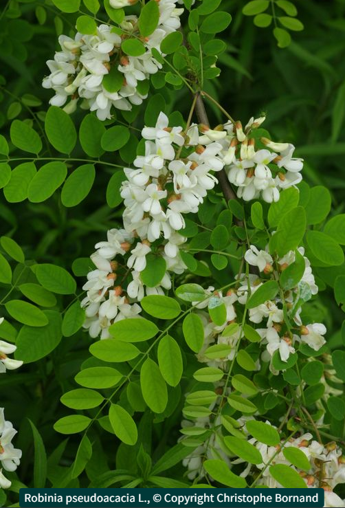 Originaire d’Amérique du Nord, le robinier faux-acacia a été introduit en Suisse comme arbre d’ornement, notamment pour sa résistance à la sécheresse et à la pollution urbaine. Il s’est depuis largement naturalisé et se propage efficacement. Ses graines, transportées par le vent ou l’eau, peuvent conserver leur capacité de germination pendant de nombreuses années. Comme d’autres espèces invasives, le robinier entre en forte concurrence avec la flore indigène, appauvrit les milieux naturels qu’il colonise et engendre des coûts de gestion importants. Il présente également un risque toxicologique, puisque son écorce, ses feuilles et ses graines sont toxiques pour de nombreux animaux en cas d’ingestion.