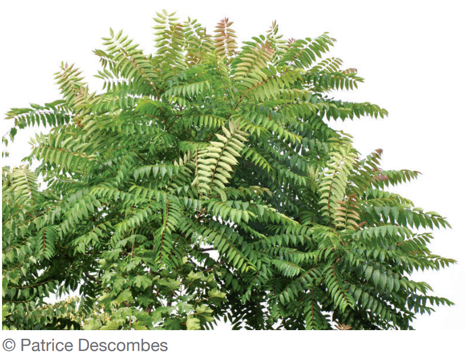 Introduit à l’origine comme arbre ornemental en provenance d’Asie, l’ailante glanduleux s’est largement répandu en Suisse de manière incontrôlée. Sa grande capacité à s’implanter dans des milieux difficiles lui permet de coloniser rapidement de nombreux espaces, au détriment de la flore indigène, ce qui appauvrit la biodiversité locale. Ses racines très puissantes peuvent également provoquer des dommages importants aux infrastructures et aux constructions. Du point de vue de la santé, l’ailante glanduleux peut entraîner de fortes irritations cutanées et son pollen est susceptible de provoquer des réactions allergiques chez certaines personnes.
