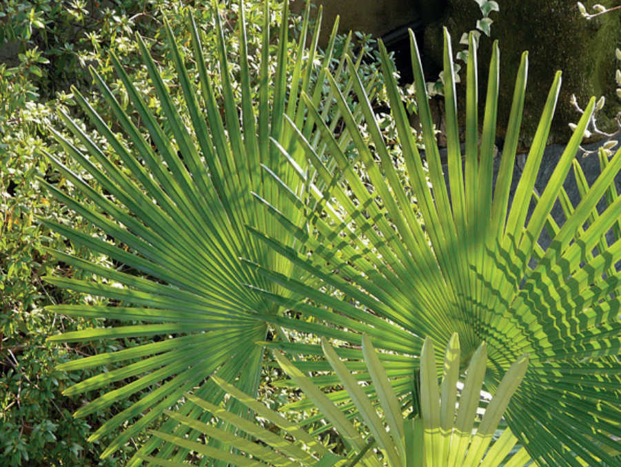 Le palmier chanvre est un palmier élancé au tronc fibreux, avec de grandes feuilles en forme d’éventail. Il est souvent planté dans les jardins ou visible près des habitations et il est visible toute l’année.