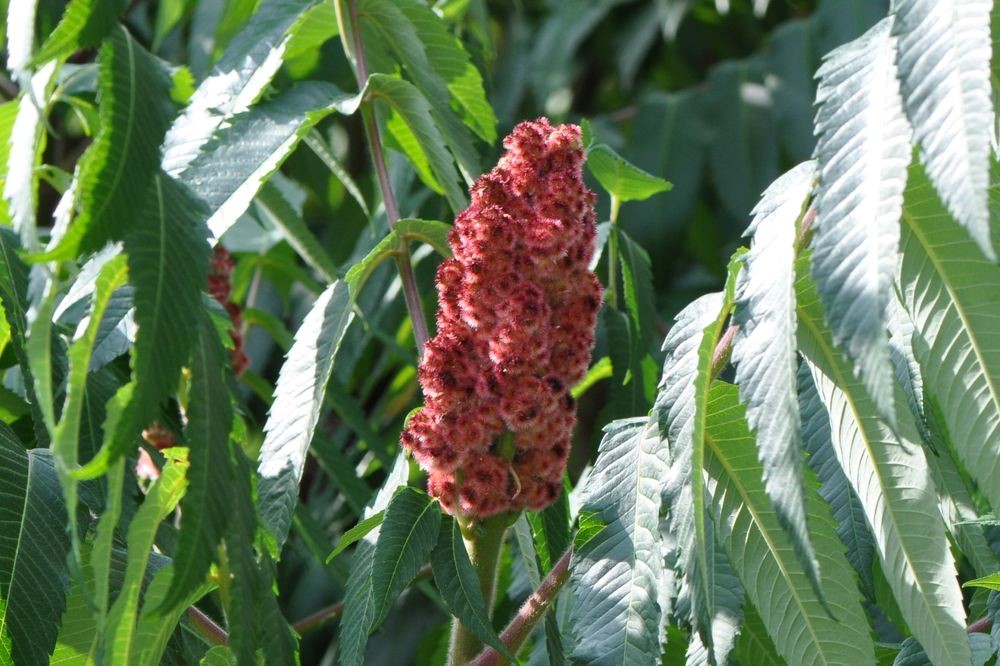 Le sumac, aussi appelé vinaigrier, est un arbuste originaire d’Amérique du Nord. Résistant au gel et à la pollution atmosphérique, et apprécié pour son aspect décoratif, il a longtemps été planté dans les parcs et les jardins. Sa grande capacité de reproduction, notamment par ses racines, lui permet toutefois de coloniser rapidement les milieux. Très concurrentiel, il freine le développement des espèces indigènes et appauvrit la biodiversité locale. L’ensemble de la plante est toxique et peut provoquer des réactions allergiques, telles que des irritations ou des inflammations. Comme d’autres espèces invasives, le sumac peut également engendrer des coûts d’entretien et des dommages dans les milieux construits.
