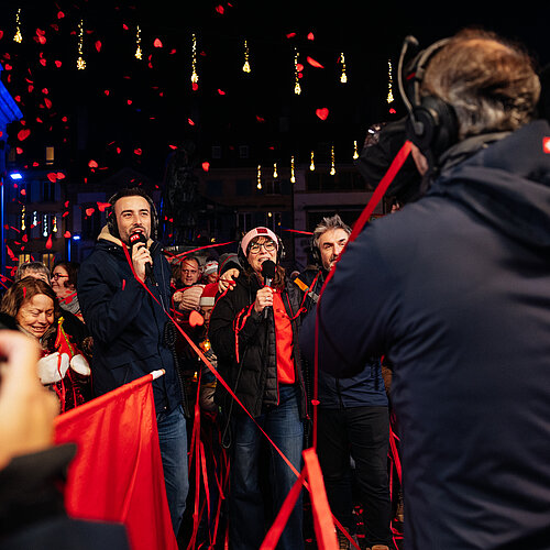C’est à Yverdon-les-Bains, sur la Place Pestalozzi, que l’opération « cœur à cœur » s’est achevée, vendredi soir dernier, en marge des nocturnes de la ville. Tout au long de la journée, autorités et personnalités de la région se sont succédé au micro des journalistes de la RTS afin de récolter des fonds destinés à la protection des enfants victimes de violence. Le programme a établi un nouveau record cette année, en collectant 5,03 millions de francs en une semaine !