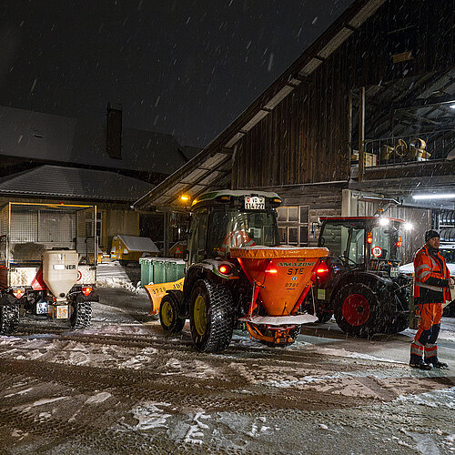 Pour déblayer les 120 km de route, la voirie dispose de sept équipes composées de quatre personnes en moyenne et trois véhicules. Avec une vitesse de 30 km/h, comptez quelque 9 heures d'intervention et un départ vers 3h du matin!