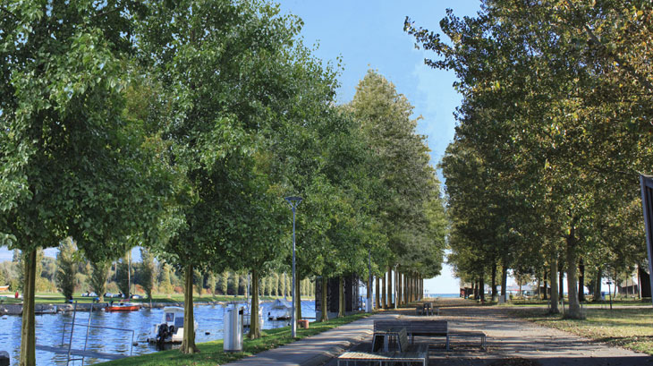 A titre d’exemple, lors du renouvellement au Quai de Nogent, la Ville a décidé de planter 22 chênes à feuilles de saule, une essence durable, résiliente aux aléas climatiques et adaptée au bord du lac. Ces arbres majestueux assureront la pérennité de l’alignement en bord du cours d’eau. Cette espèce de chêne avec ses feuilles très étroites et linéaires ressemble fortement au saule et prend une jolie teinte jaune orangée en automne.