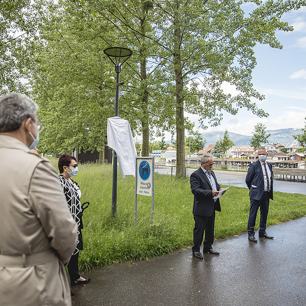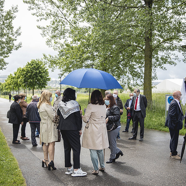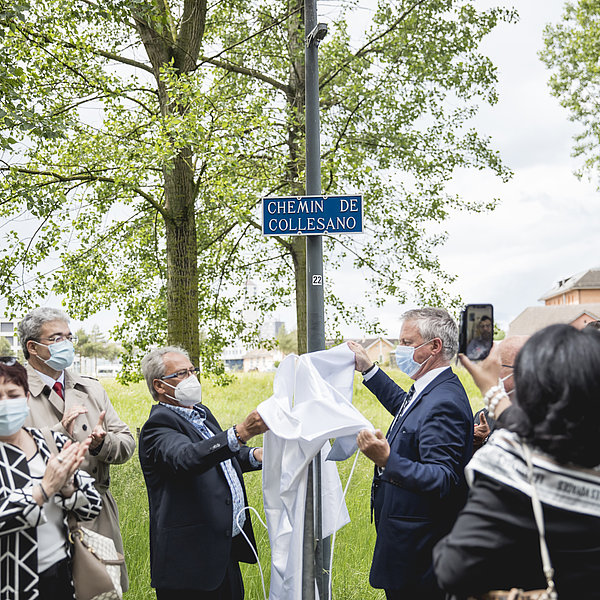 Samedi dernier, malgré une météo capricieuse, la Ville d’Yverdon-les-Bains a inauguré le chemin de Collesano, précédemment nommé chemin des Bosquets. Cet événement a eu lieu afin d’honorer les 25 années d’amitié avec la commune sicilienne, avec laquelle la Ville d’Yverdon-les-Bains est jumelée. Des membres de l’Amicale dei Collesanesi et de la Municipalité étaient réuni-e-s à cette occasion; des représentant-e-s des autorités de Collesano ont également suivi l'inauguration par visioconférence.
