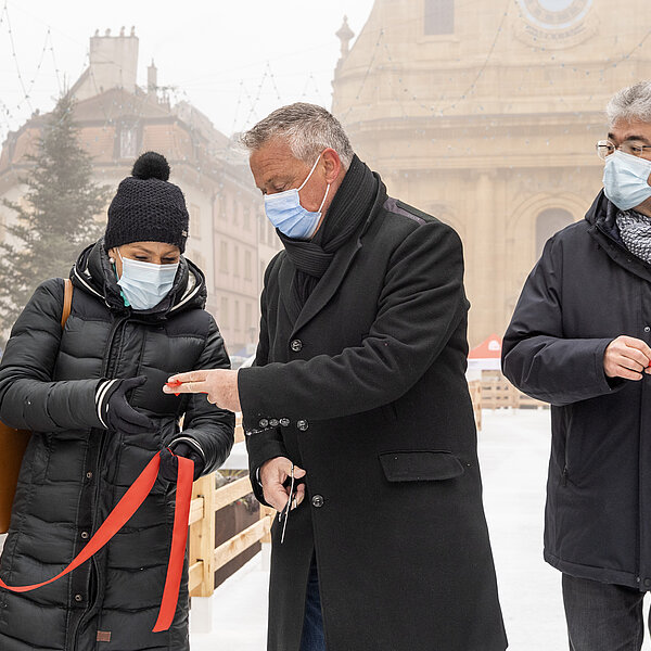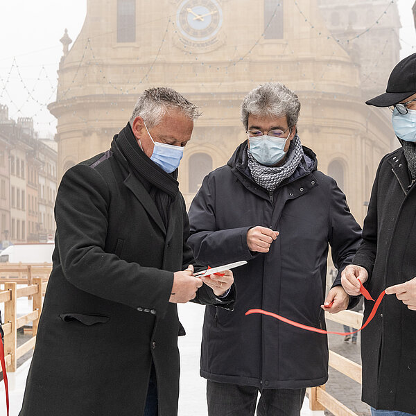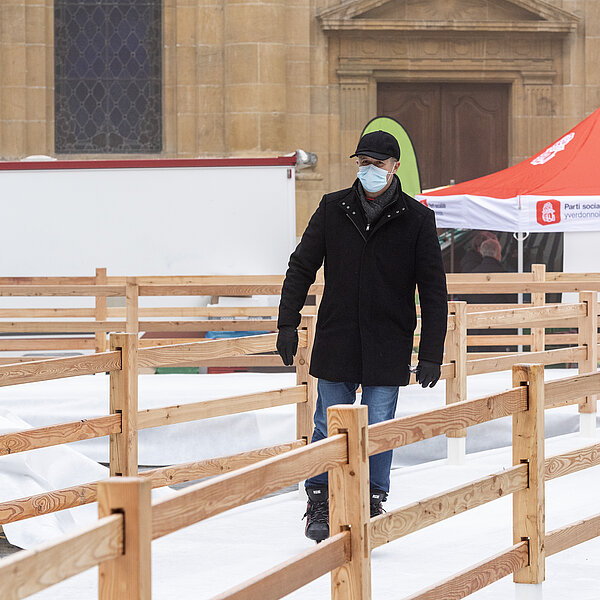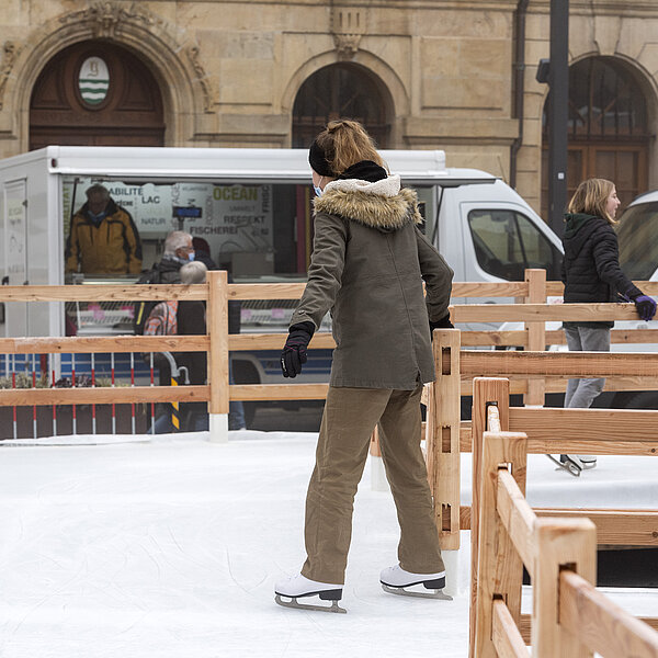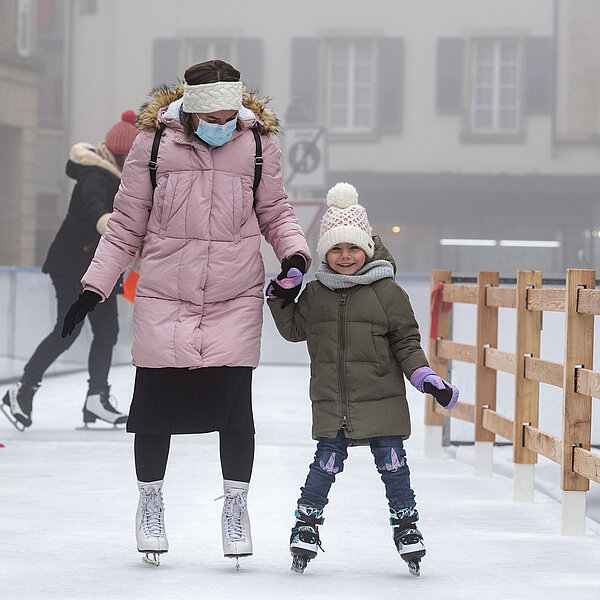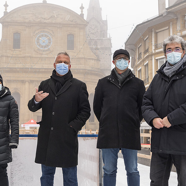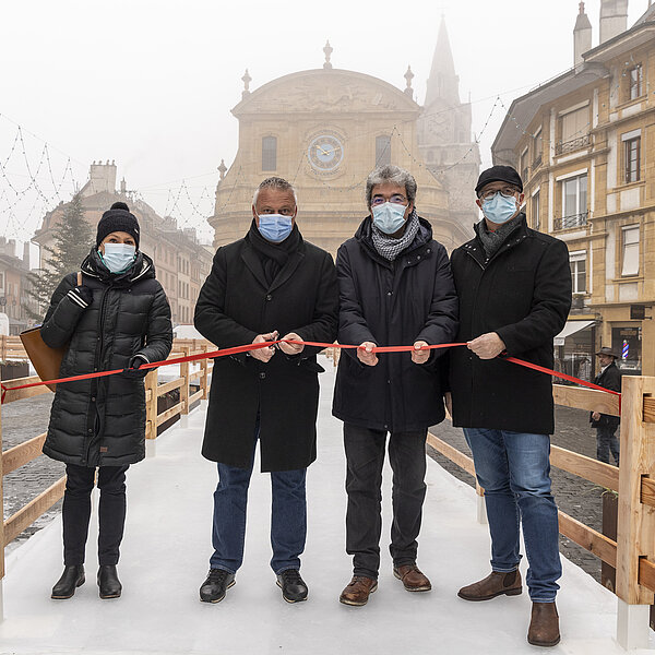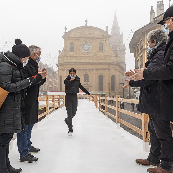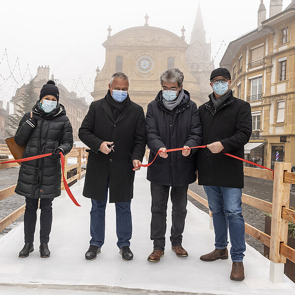 Après une première édition en 2020, dans le cadre des Jeux olympiques de la jeunesse d'hiver, la Ville d’Yverdon-les-Bains et son Service des sports et de l’activité physique ont réinstallé le Chemin de glace sur la Place Pestalozzi, pour le plus grand plaisir de toutes les générations. Malgré un léger retard dû à la météo et au COVID, l’inauguration a eu lieu le samedi 15 janvier à 10h00 en présence du syndic, Pierre Dessemontet, du municipal en charge des sports et de l’activité physique, Jean-Daniel Carrard, du municipal en charge de la Sécurité publique, Christian Weiler, et de la cheffe du service des sports et de l’activité physique, Ophélia Dysli-Jeanneret. Le photographe Thierry Porchet a capturé ce moment, à découvrir dans la galerie photo ci-dessus.