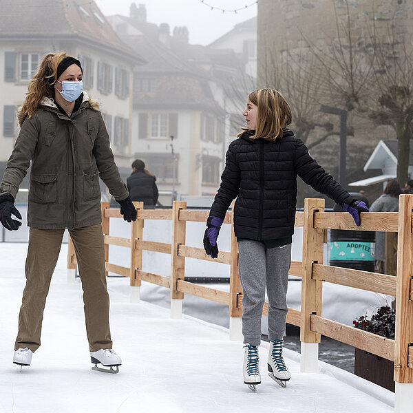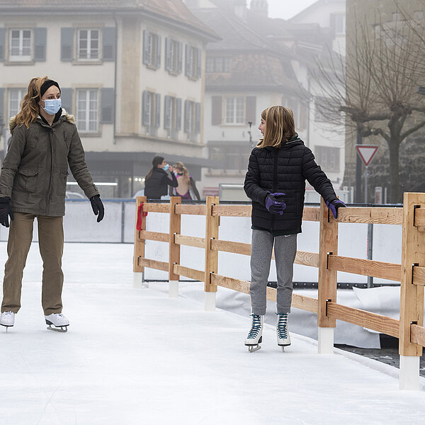 Le Service des sports et de l’activité physique tient à remercier La Pati S.A. pour l’installation de l’infrastructure, les collaborateur∙trices de la patinoire pour son entretien et les membres du HCY et du CPAY pour la tenue du chalet de location.