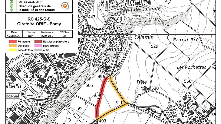 Une signalisation de déviation sera mise en place par la route de Moudon et la route de Pomy dans les deux sens. Afin de renforcer la sécurité, les deux intersections seront limitées à 60 km/h pour toute la durée du chantier.