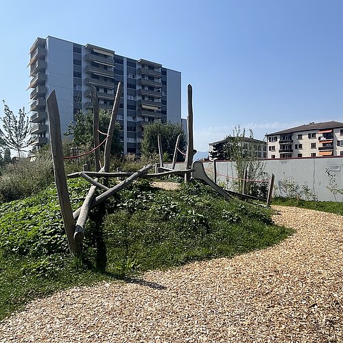 Au cœur du quartier urbanisé de Pierre de Savoie se niche un îlot de verdure isolé de la circulation. Sa place de jeux perchée sur une butte s'adresse principalement aux enfant entre 6 et 12 ans, même si les plus jeunes et les plus âgés peuvent aussi l'apprécier.