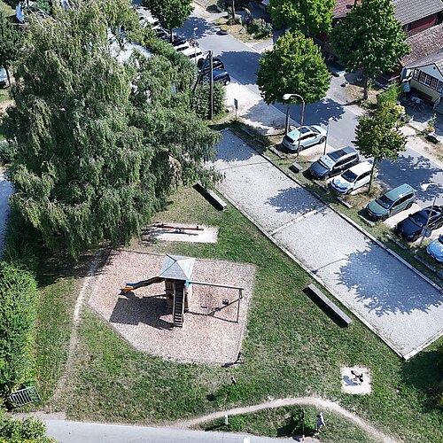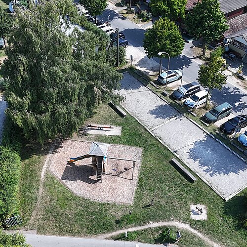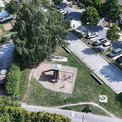 Située non loin du lac, cette aire de jeux fait partie du camping familial des Iris et dispose également de deux terrains de pétanque. Les parents apprécieront la proximité de la plage, du centre nautique Y-Plage, accessibles en quelques minutes à pied.