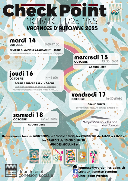 Pour tout autre renseignement, merci de contacter le JECOS au 024 423 60 28, ou jeunesse(at)yverdon-les-bains.ch